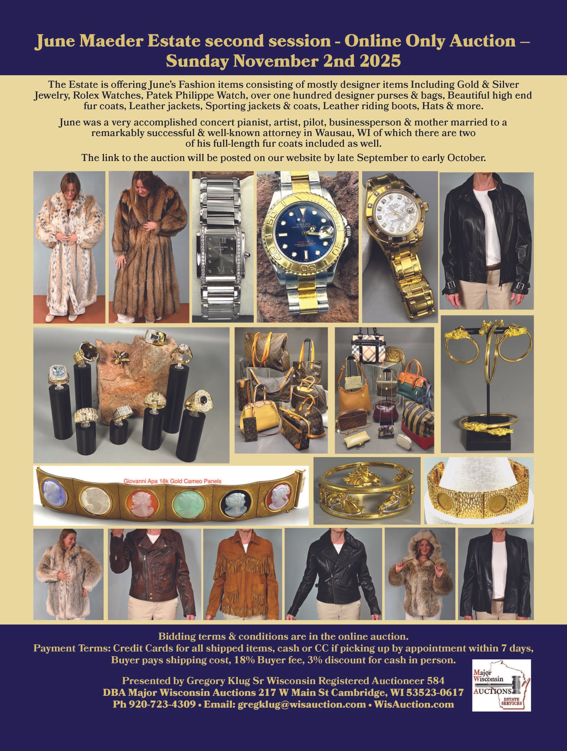 For Auction and Estate service only Daily: 9:00 AM – 5:00 PM